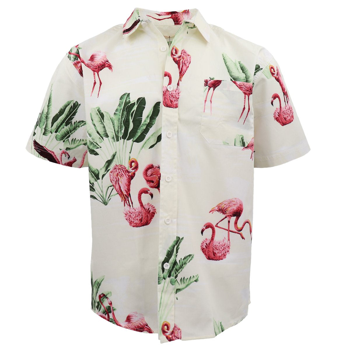 100% Cotton Adults Hawaiian Beach Shirt Summer Casual Tee Tops - Flamingo Garden
