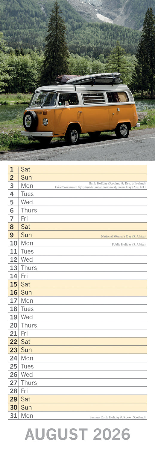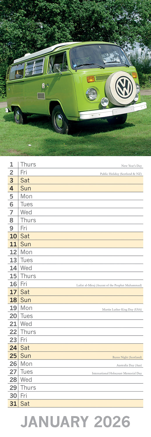 Camper Vans 2026 Slimline Slim Wall Calendar Cars Hanging Planner New Year Gift