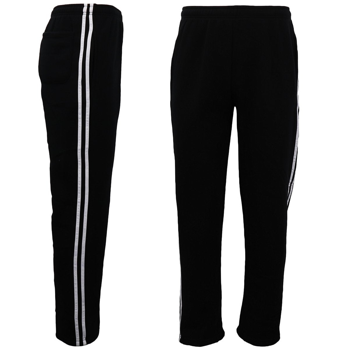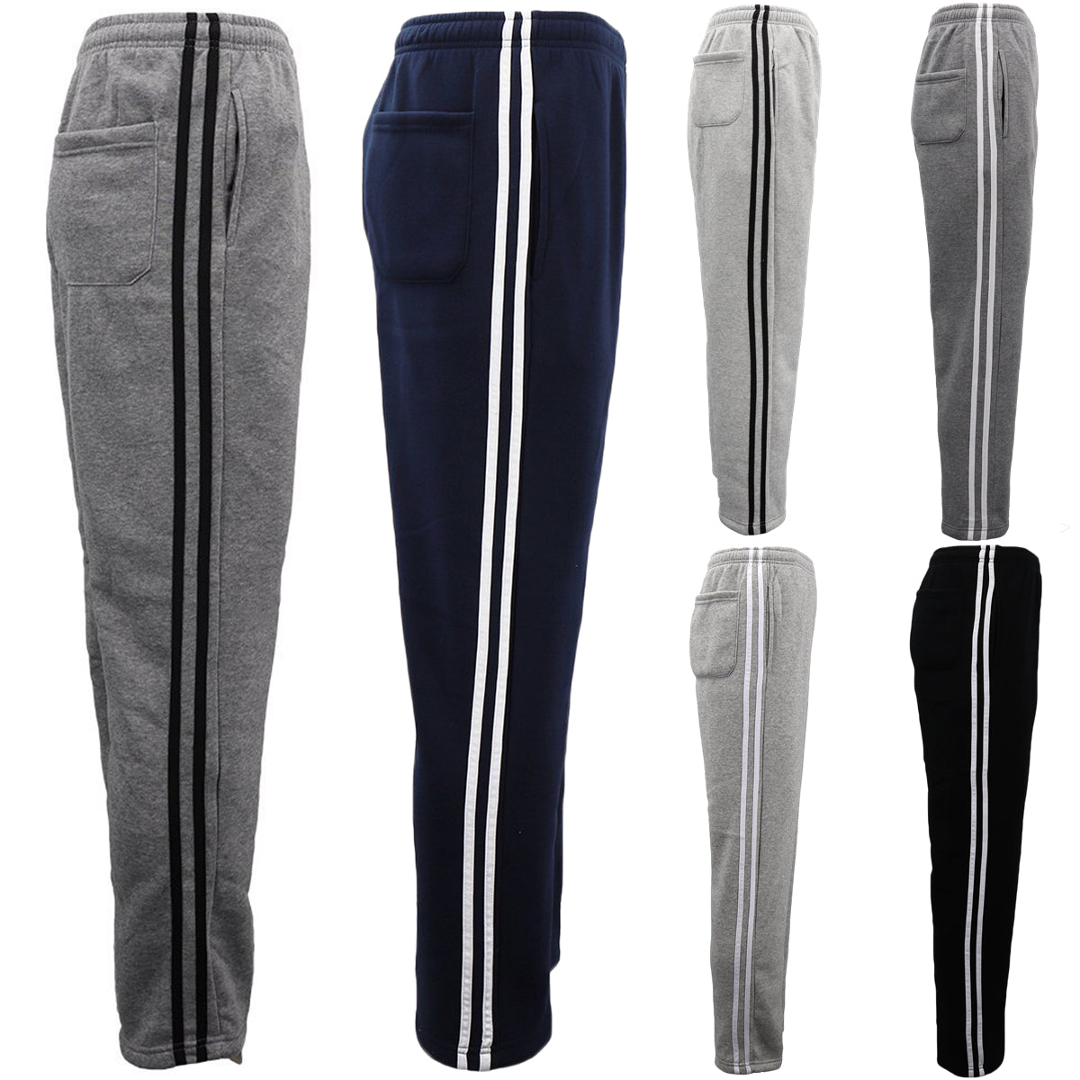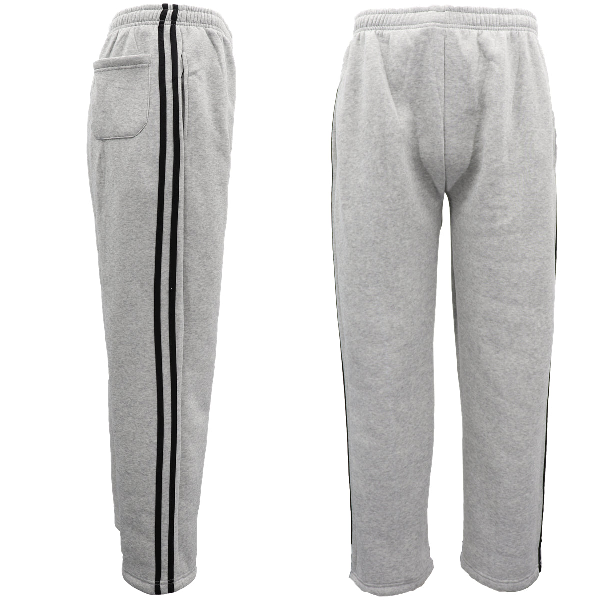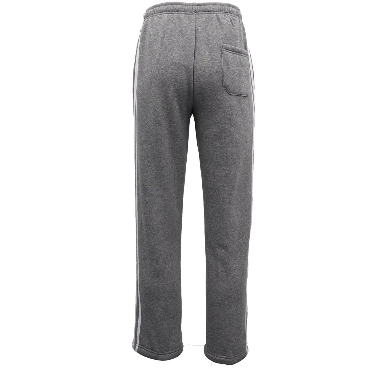 Men's Fleece Lined Casual Sports Track Striped Sweat Pants Trousers Gym Trackies - Light Grey w White Stripes